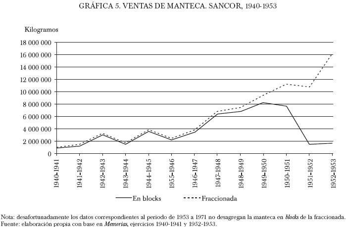 El progresivo vuelco de la producción mantequera al mercado interno se asociaba a la expansión en la demanda nacional de lácteos y a la incorporación de la tecnología que permitía la comercialización de la manteca fraccionada en vez de blocks. La inversión en máquinas fraccionadoras tenía por objetivo acceder al comercio mayorista con marca de identificación propia, lo que debió tener una importancia crucial para poder posicionarse en el mercado local frente a otras empresas competidoras.