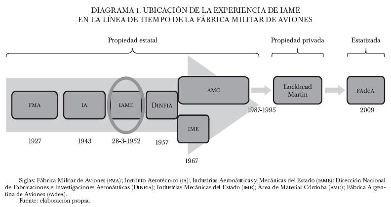 El 28 de marzo de 1952, sobre la base de los bienes y personal hasta entonces afectados al Instituto Aerotécnico, se crea por decreto número 6191, Industrias Aeronáuticas y Mecánicas del Estado (véase diagrama 1). Constituida como una empresa autárquica sometida al régimen de la ley número 13653 de Empresas del Estado,47 IAME tenía a su cargo: