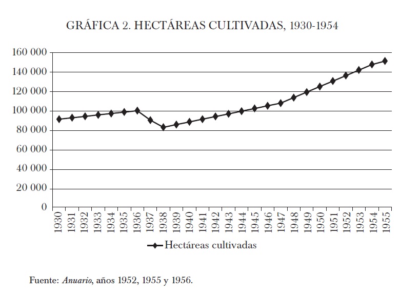 84 Desde 1944 había comenzado a ascender, llegando a los 69.8 litros en 1949, bajando a 47.8 litros en 1951 y subiendo a 59.7 litros en 1953.