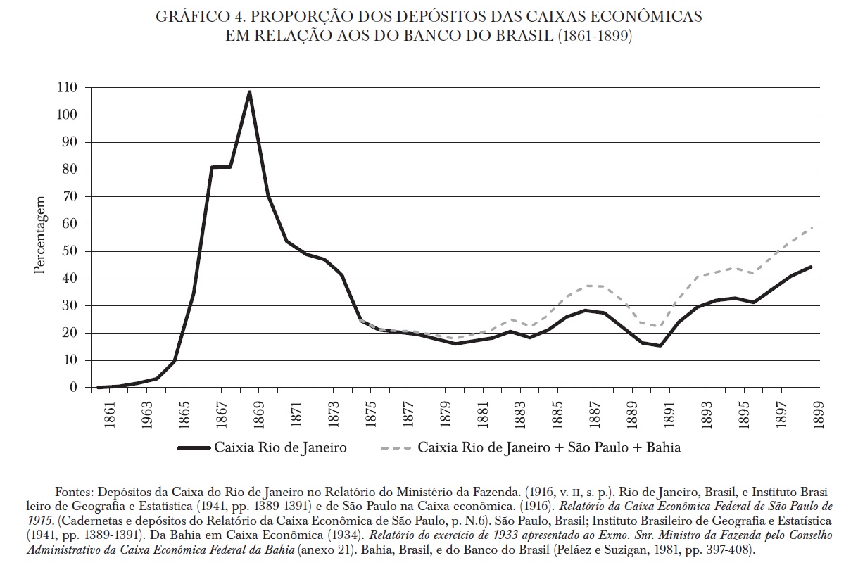 Apesar da grande expansão do Banco do Brasil, as caixas mantiveram depósitos na proporção de cerca da metade do novo banco durante a década de 1920. Por fim, a reorganização das caixas nos anos 1930 permitirá um crescimento expressivo dos seus depósitos, mesmo em relação ao Banco do Brasil que também foi muito atuante nessa época. Assim, verificamos a grande relevância das caixas desde o século XIX em termos dos depósitos relativamente a outra instituição de porte da época.