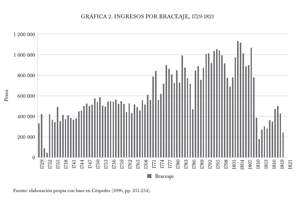 La suma por concepto de braceaje fue entonces de 4.41% del total nominal acuñado (véase cuadro 1).