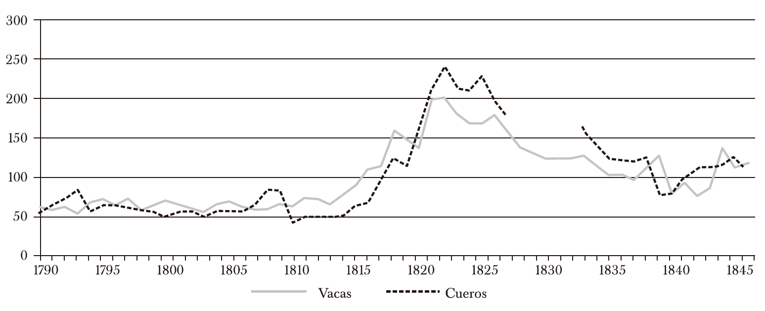 27 Sobre la caída de precios de los vacunos en Buenos Aires entre 1791 y 1808, véase Garavaglia (1999).